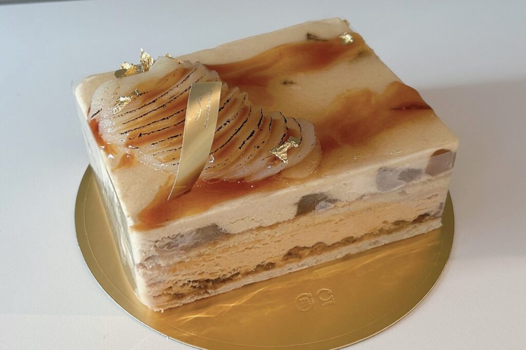 濃厚なチョコレートのムースに、蜂蜜とバニラキャラメルクリームが入ったムースケーキ