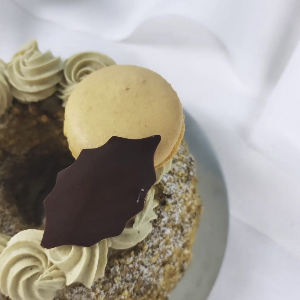 黄色いマカロンコックはゆずの香り。ベルをイメージして添えました。