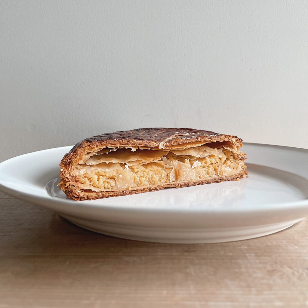 パイ生地の中にアーモンドクリームの詰まった円形状のお菓子。