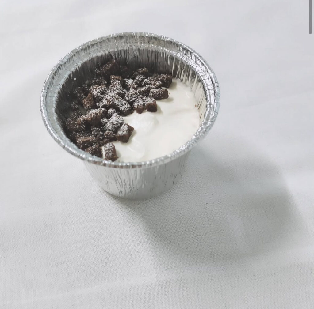 クリームに移した優しい麦茶の香りは、下層の濃厚なチョコレートプリンの風味を引き立ててくれ、全体にまとまりを与えてくれます。